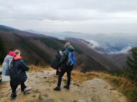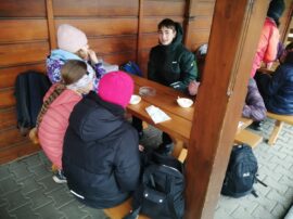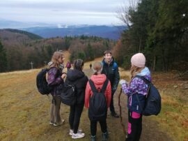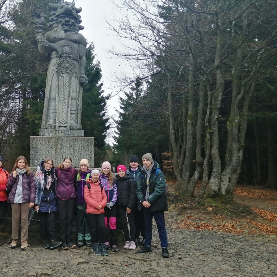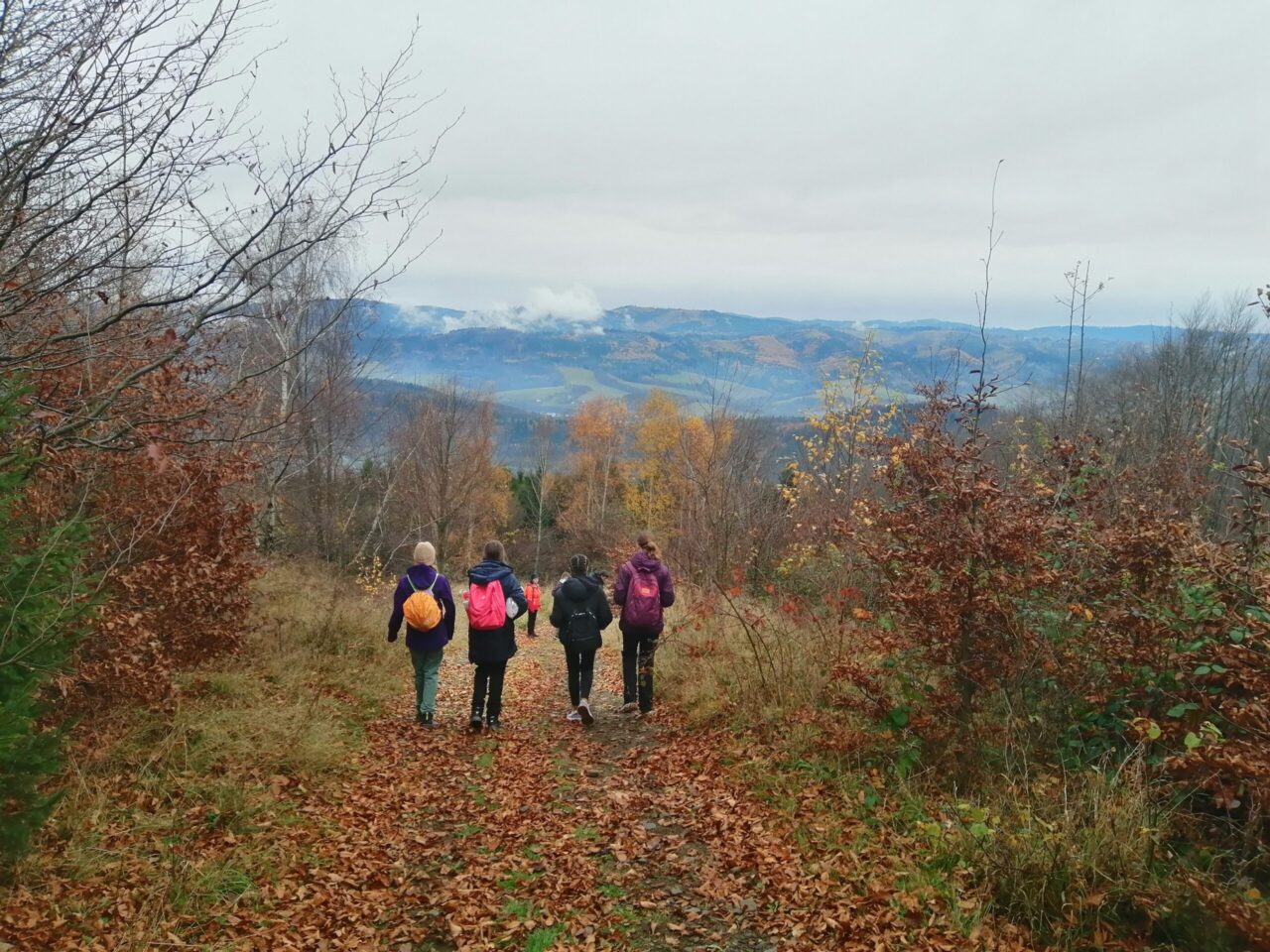 Když jsme dorazili nahoru, dali jsme si pořádnou turistickou polévku a pár dalších dobrot, které nás pěkně zahřály. Pak jsme vyrazili směrem na Radhošť a po svačince dál lesem do Rožnova. Cestou jsme viděli fakt krásné výhledy – i když bylo zataženo, všechno kolem vypadalo tak tajemně a kouzelně.